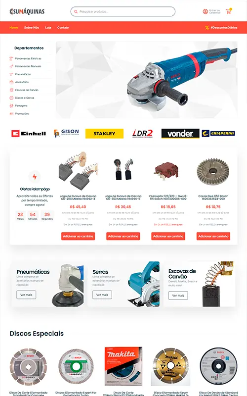 Criação de lojas virtuais (e-commerce) com diversas formas de pagamento e envio, além de carrinho, checkout transparente e cupons de desconto.